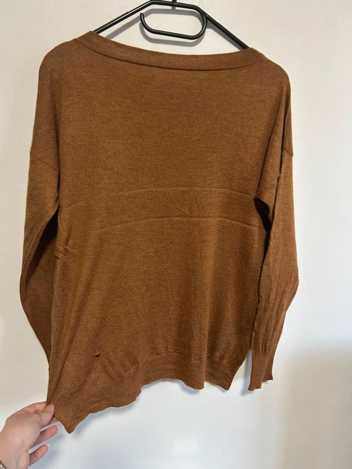 Mignon pull marron en laine et cachemire • Caroll • taille S Attention il y a un trou dans le dos, à refaire 20% laine et 5% cachemire #pull #pullover #pulllaine #pullcachemire #pulllainecachemire #pullcaroll #caroll
