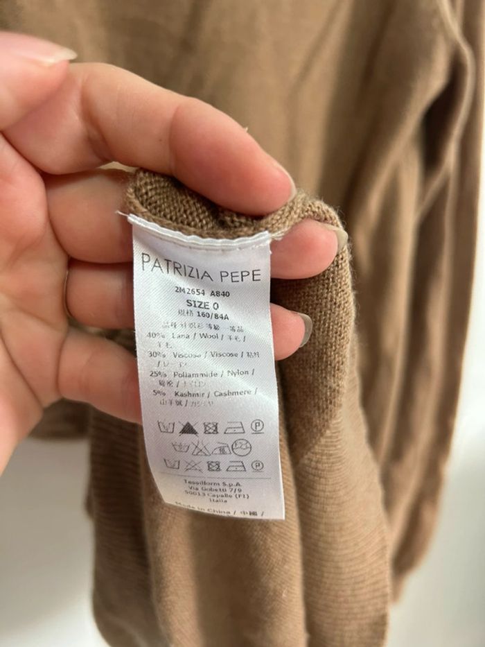 Mignon pull over en laine & cachemire beige / marron • taille 40/42 • Patrizia Pepe Un petit trou peu visible & quelques bouloches 40% laine, 5% cachemire, 30% viscose et 25% polyamide Noté taille 0 : correspond à du 40/42 #pull #pullover #pulloversize #pulllaine #pullenlaine #pullencachemire #pulllaineetcachemire #pullpatriziapepe #patriziapepe #lainepatriziapepe #cachemirepatriziapepe