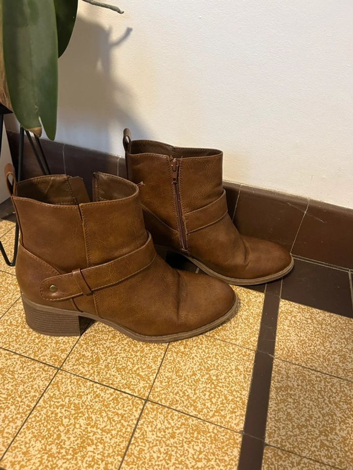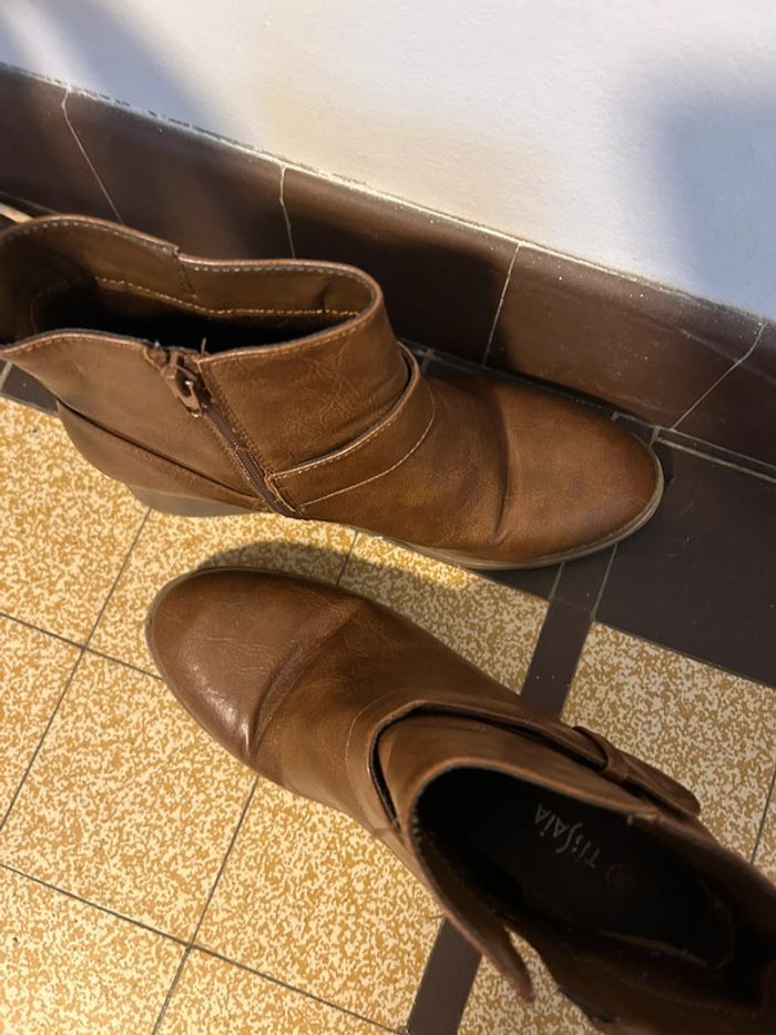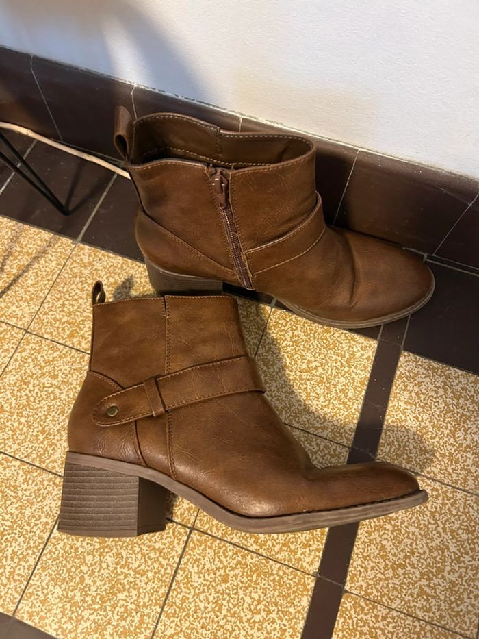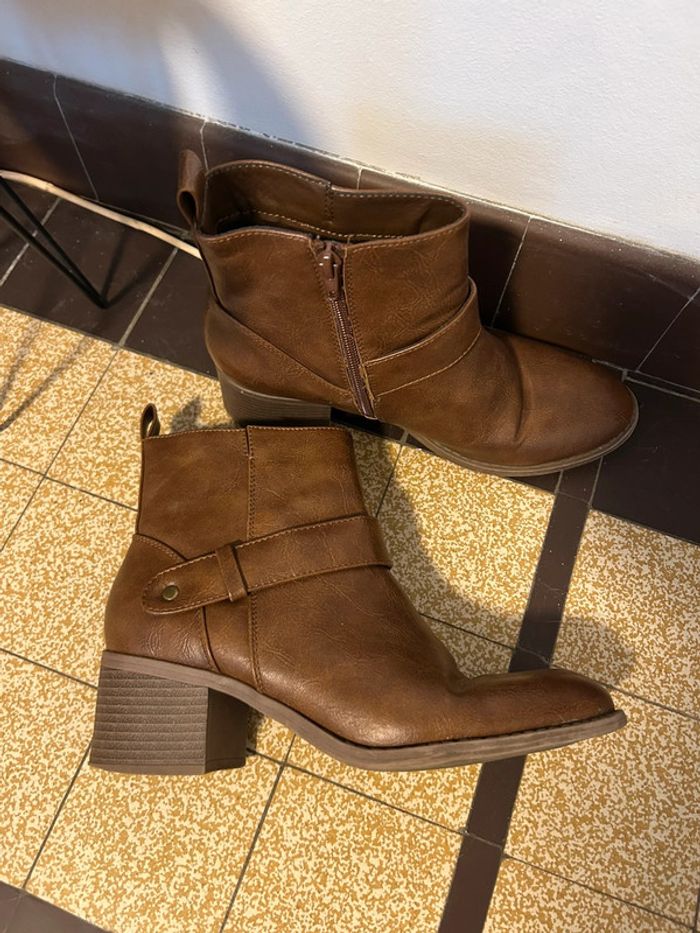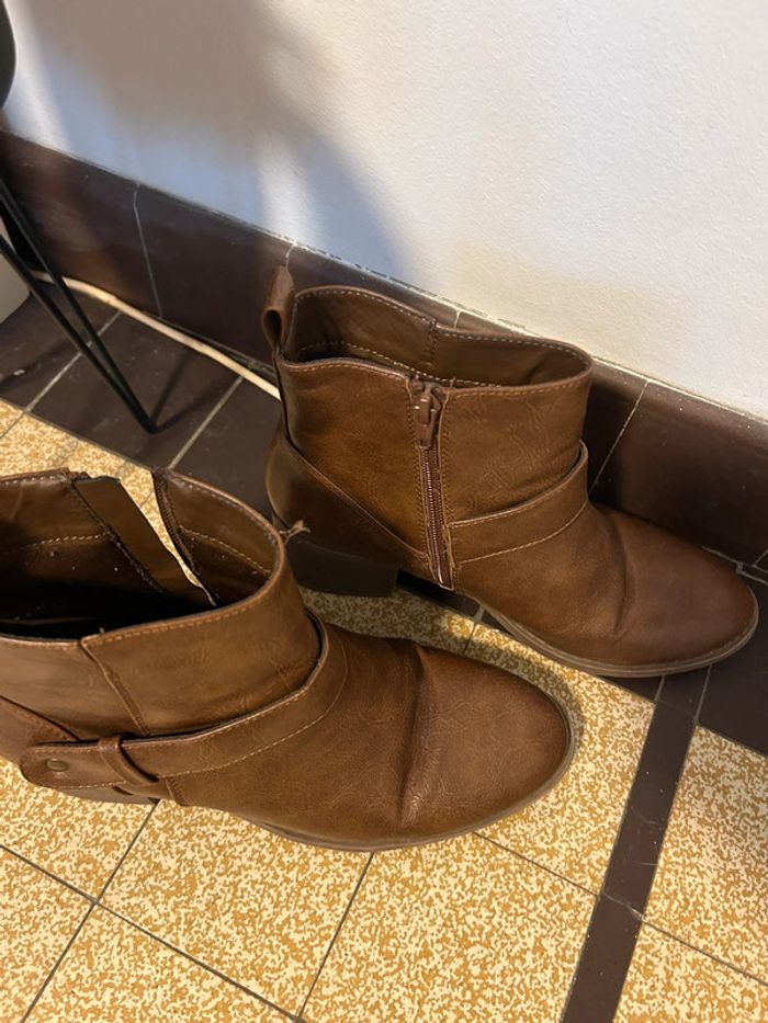 Adorables bottines en similicuir • marron • taille 39 • Tissaia • avec boucle et fermeture - photo numéro 1