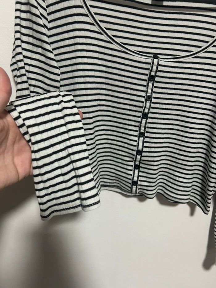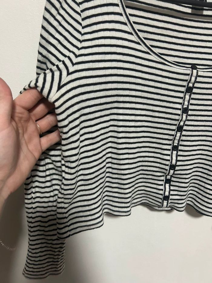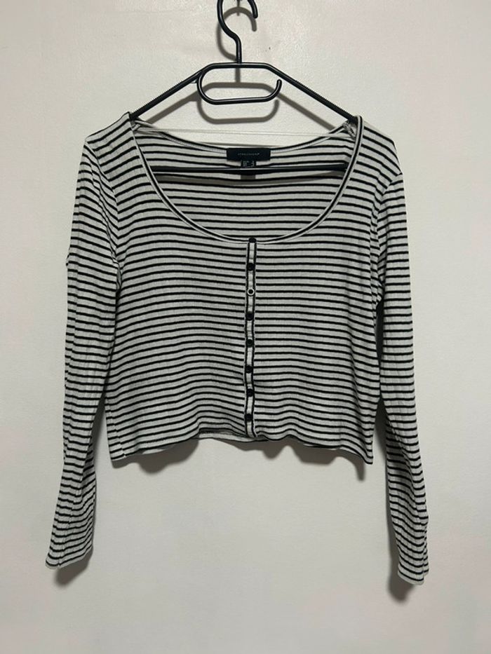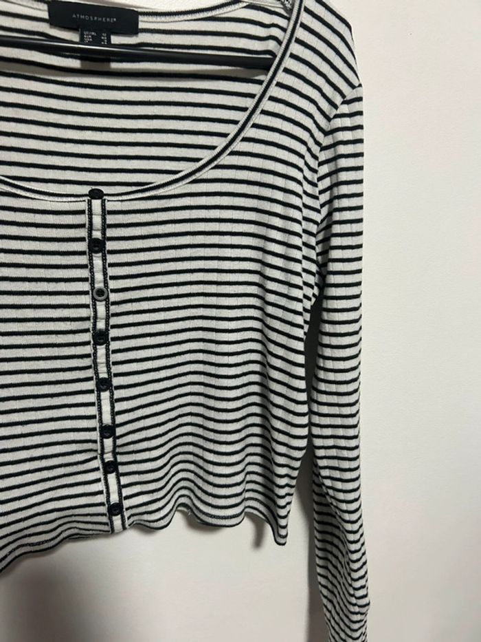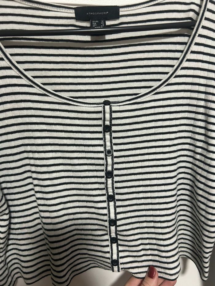 Mignon top court rayé Atmosphère taille 40, 100% coton En très bon état Avec détails boutons sur le devant, style cardigan #top #topcourt #blouse #toprayé #atmosphère