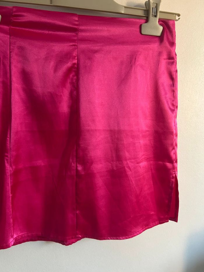 Mignonne jupe en polyester rose • fluide et légère • fente sur le côté et fermeture à l’arrière • shein • taille S En parfait état #jupe #jupefemme #jupecourte #jupefluide #jupelégère #jupefente #jupeshein #shein
