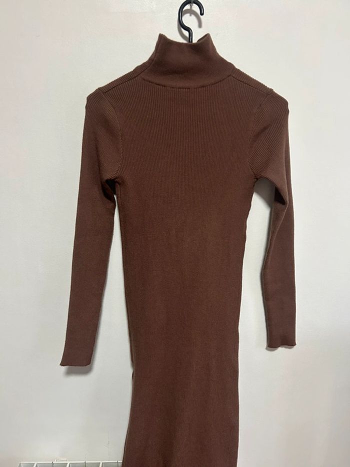 Mignonne robe longue avec fente et col roulé • shein • taille M • marron - photo numéro 3