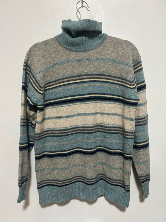 Magnifique pull over col roulé à rayures • taille M • Springfield • 100% laine - photo numéro 1