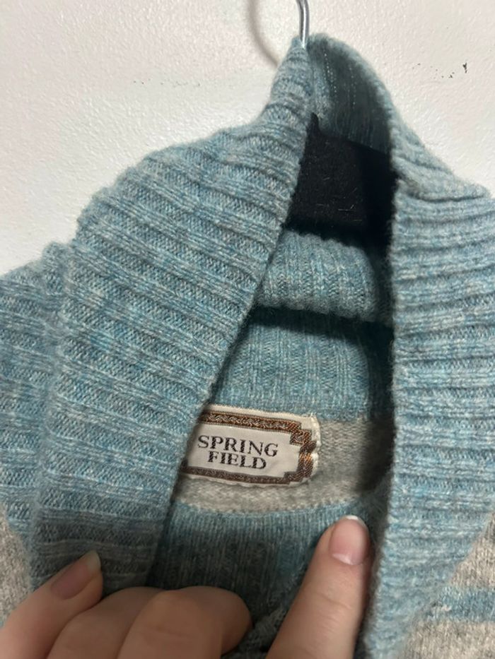 Magnifique pull over col roulé à rayures • taille M • Springfield • 100% laine - photo numéro 11