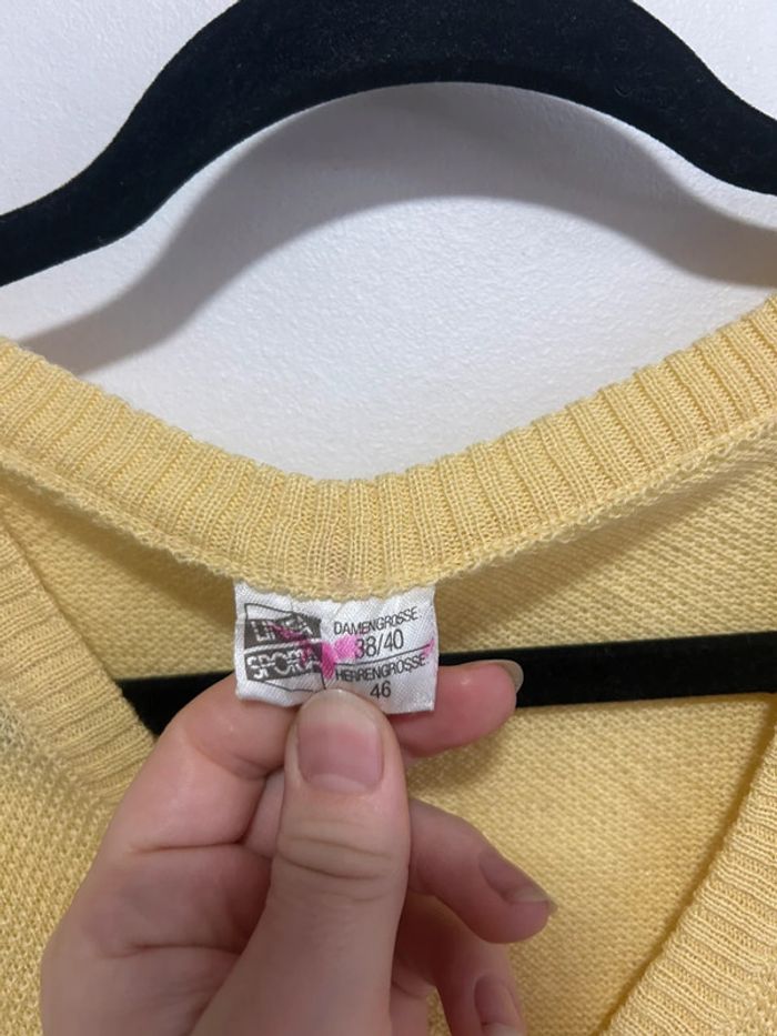 Mignon gilet sans manches • jaune • linea sporta • taille M • laine et polyamide En parfait état Gilet sans manches à col V 100% vintage #gilet #giletsansmanches #pullsansmanches #lineasporta #pullenlaine