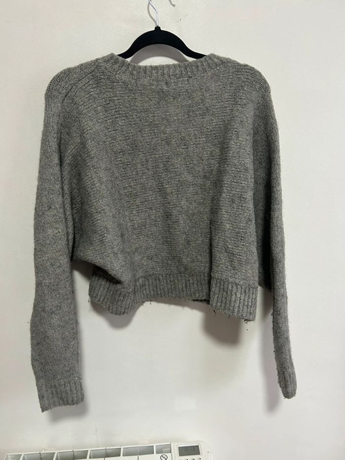Joli pull court gris à col rond • H&M • taille S • en laine - photo numéro 3