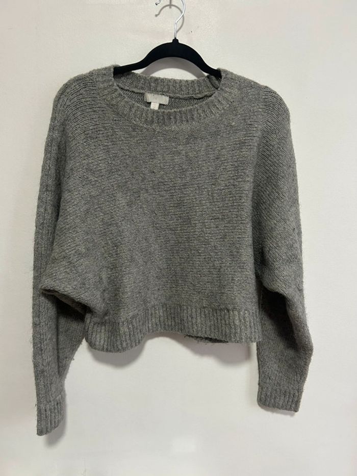 Joli pull court gris à col rond • H&M • taille S • en laine - photo numéro 1