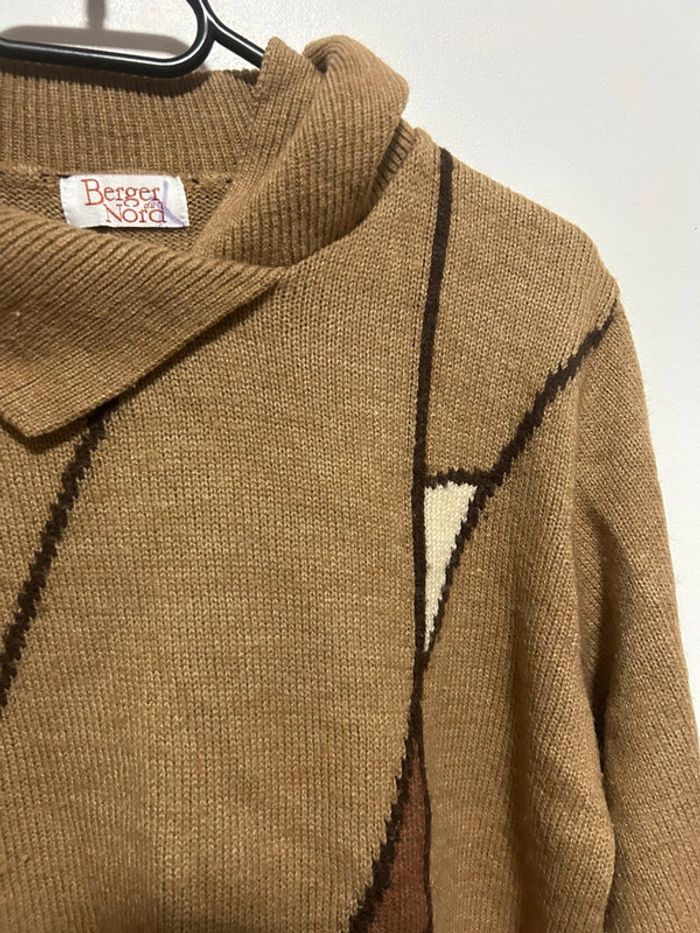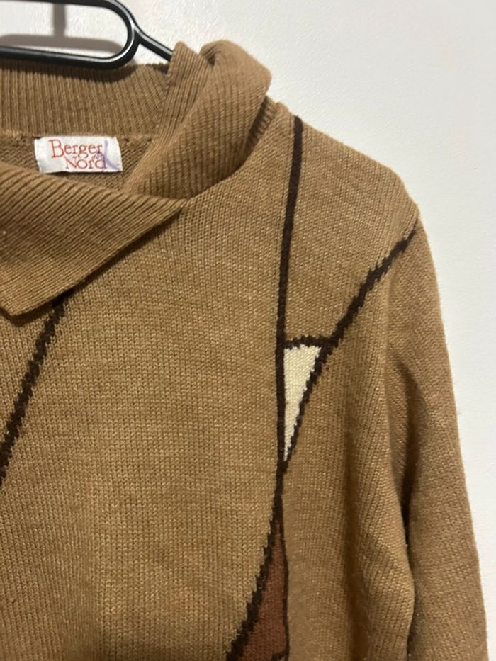Joli pull en laine beige à motifs • à petit col • 100% vintage / Berger du Nord • Taille 42 - photo numéro 13