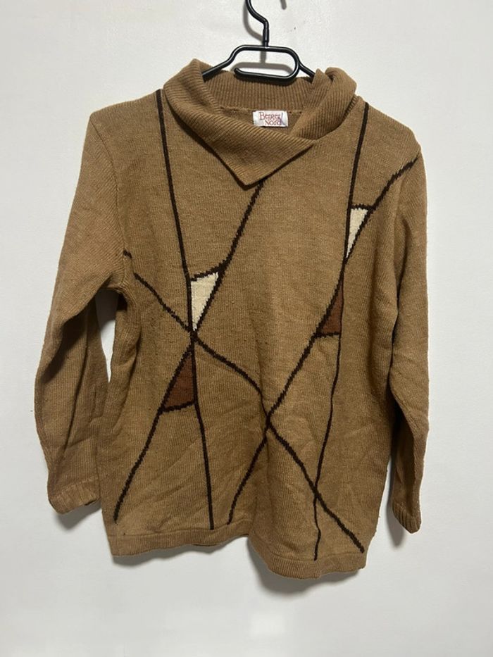 Joli pull en laine beige à motifs • à petit col • 100% vintage / Berger du Nord • Taille 42 - photo numéro 1