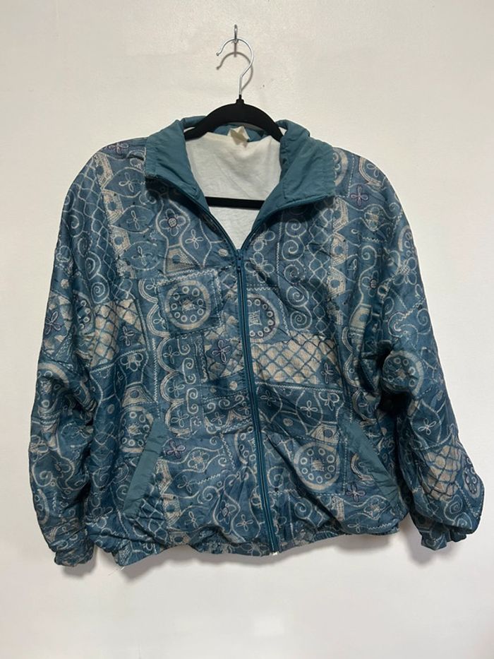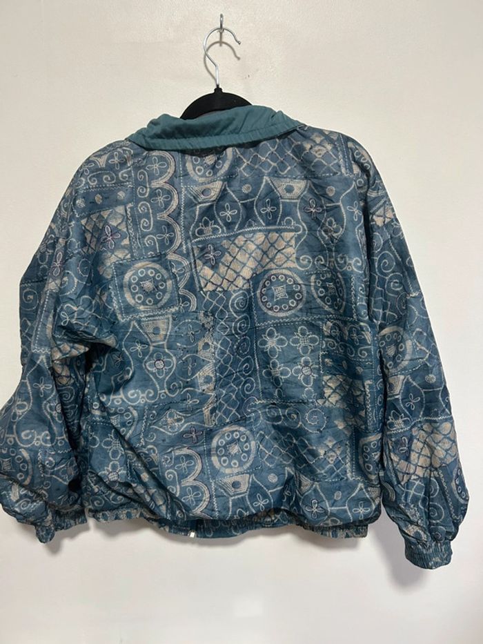Jolie veste imperméable • bleu/blanc à motifs • 100% vintage • Taille XL