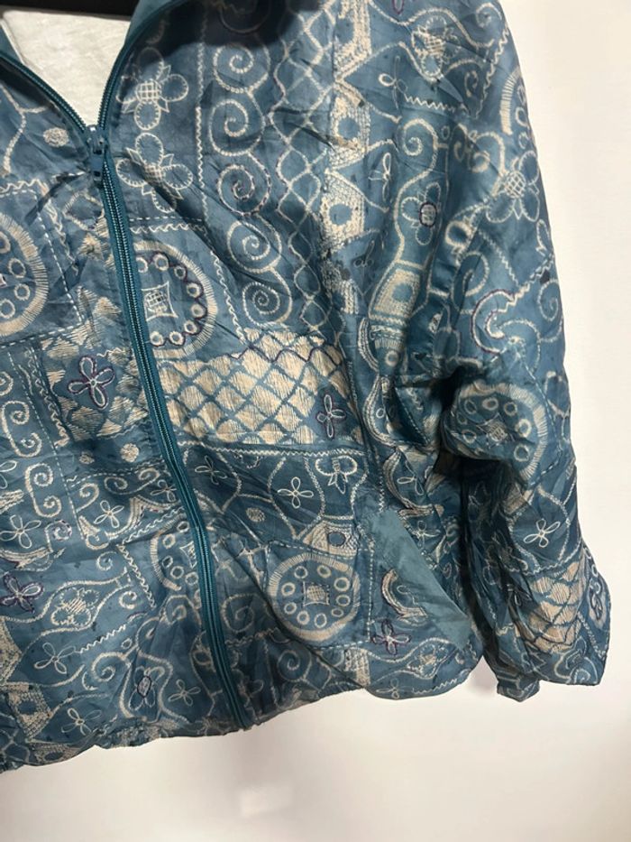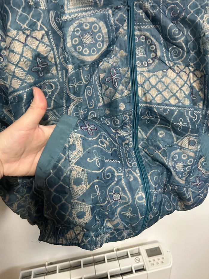 Jolie veste imperméable • bleu/blanc à motifs • 100% vintage • Taille XL - photo numéro 13