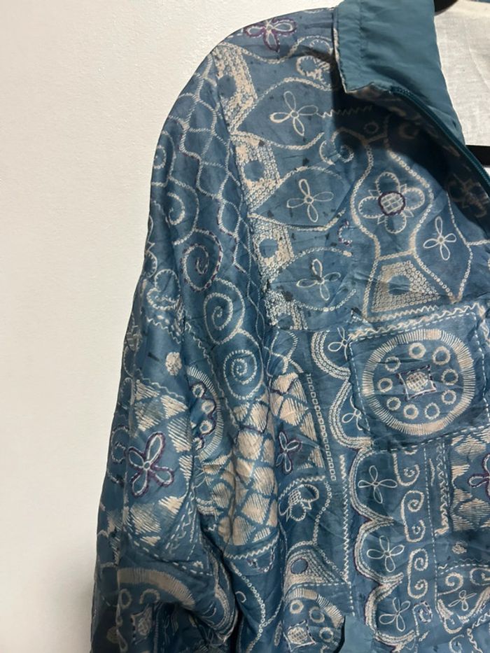 Jolie veste imperméable • bleu/blanc à motifs • 100% vintage • Taille XL - photo numéro 10