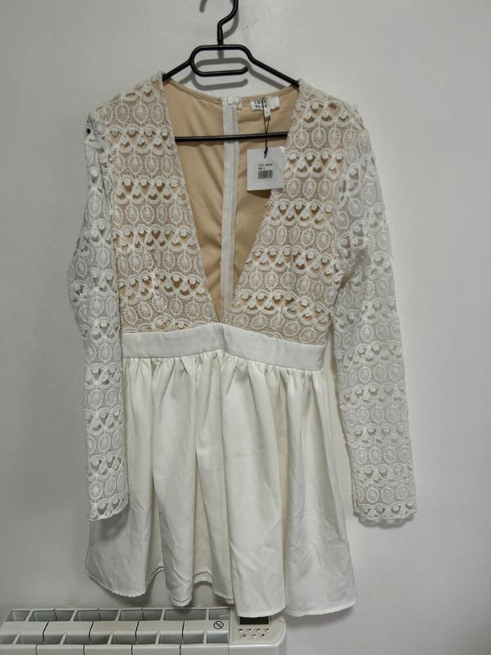 Magnifique robe courte blanche en dentelle & col V plongeant • Luxe • Taille L / 40 • étiquette - photo numéro 1