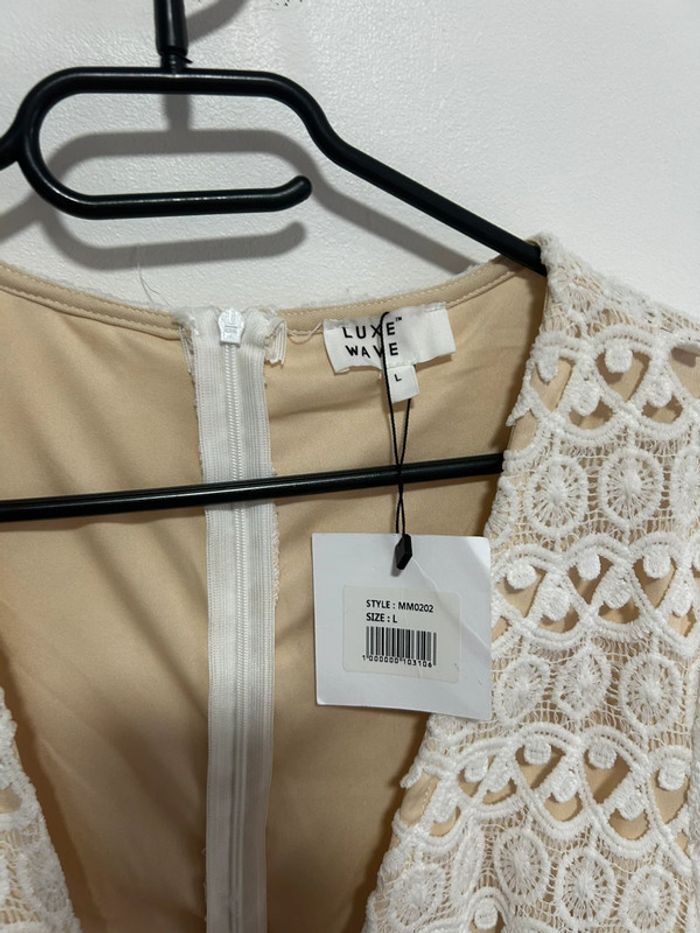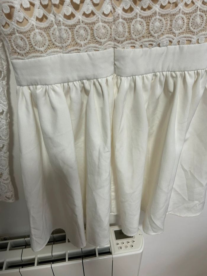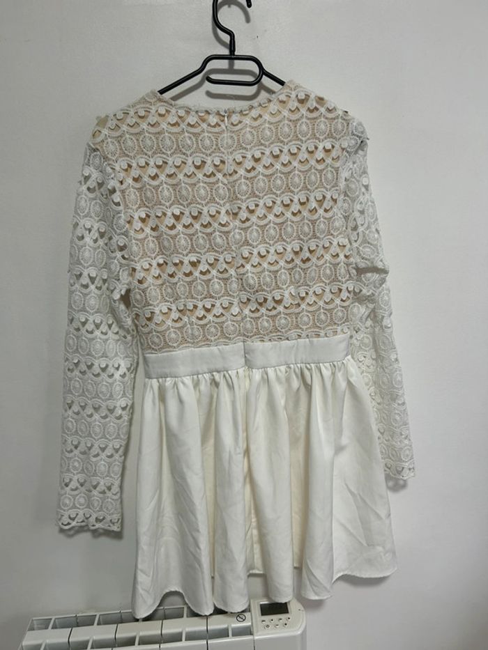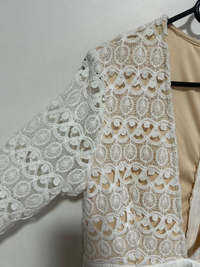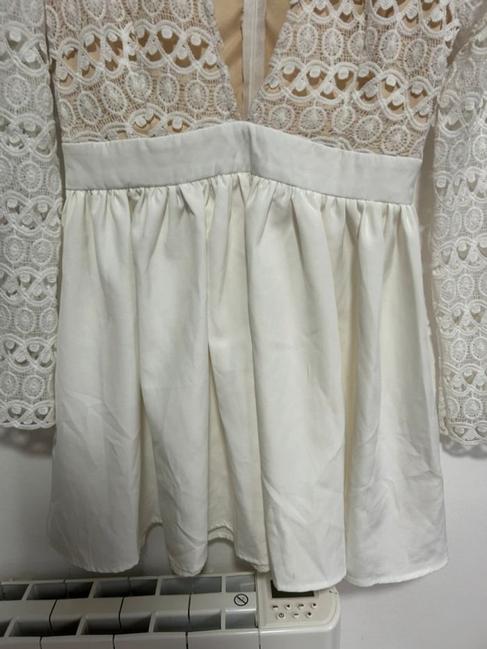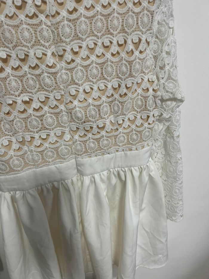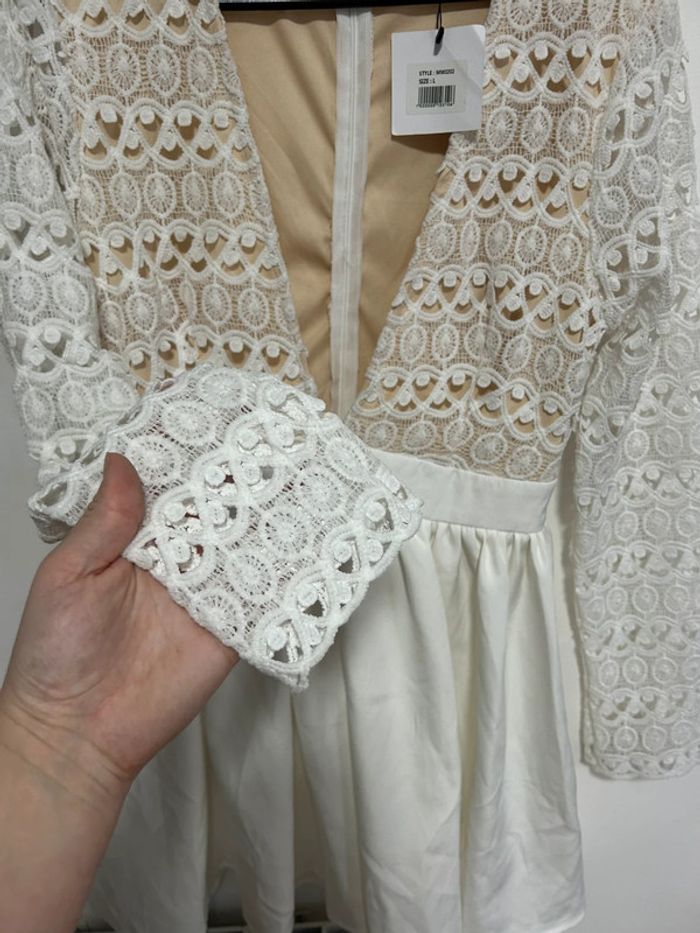 Magnifique robe courte blanche en dentelle & col V plongeant • Luxe • Taille L / 40 • étiquette - photo numéro 3