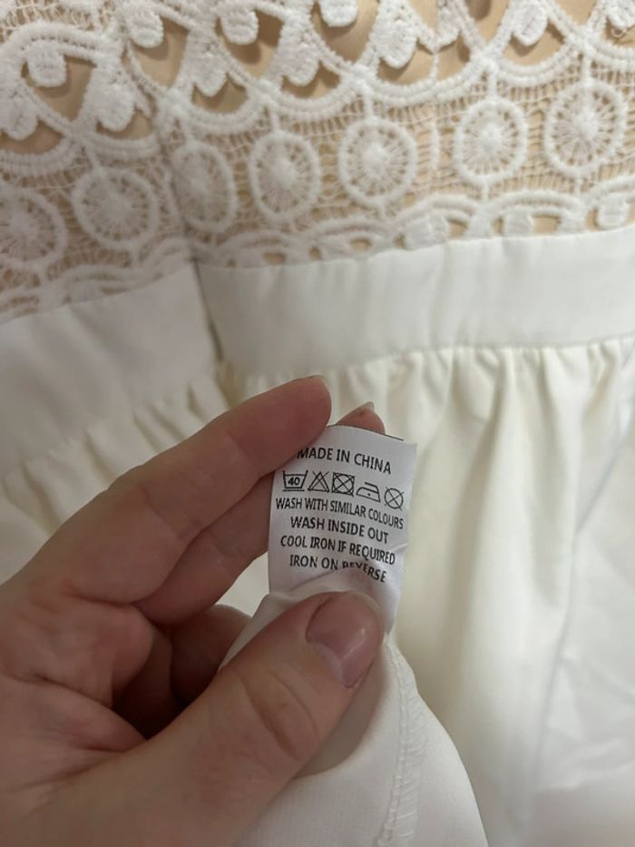 Magnifique robe courte blanche en dentelle & col V plongeant • Luxe • Taille L / 40 • étiquette - photo numéro 12