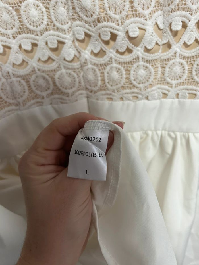 Magnifique robe courte blanche en dentelle & col V plongeant • Luxe • Taille L / 40 • étiquette - photo numéro 10