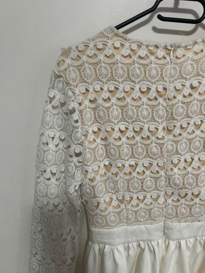 Magnifique robe courte blanche en dentelle & col V plongeant • Luxe • Taille L / 40 • étiquette - photo numéro 4