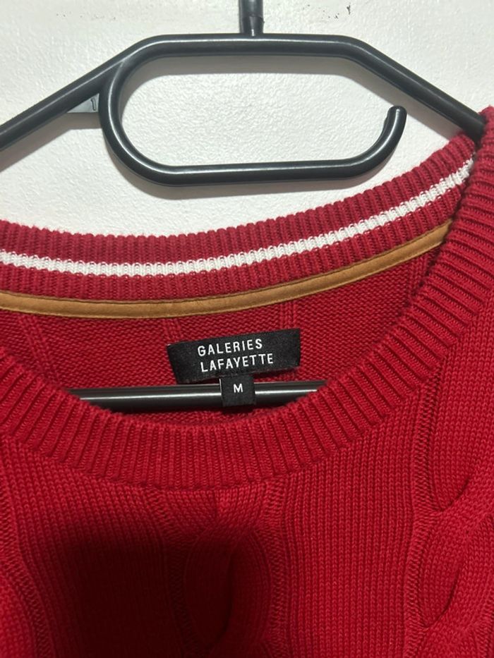 Magnifique pull en mailles torsadées rouge • Galeries Lafayette • Taille M/38
