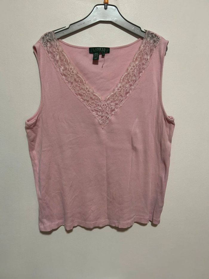 Magnifique top débardeur avec dentelle rose • Ralph Lauren • Taille L/40 • 100% coton