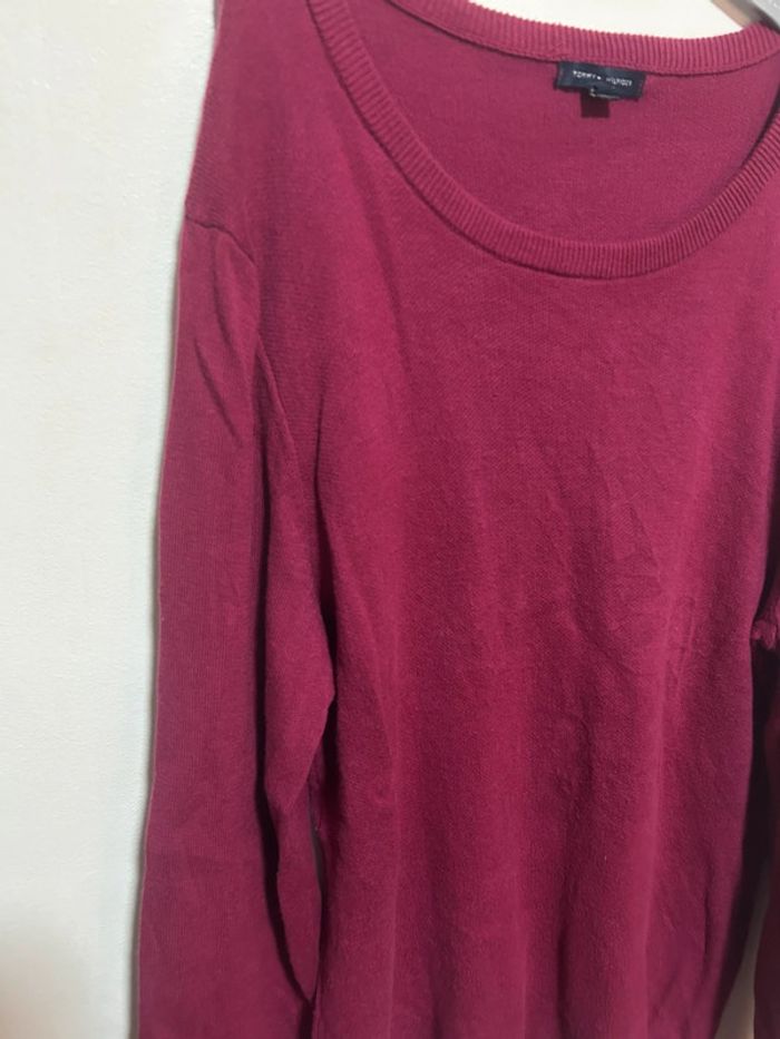 Joli pull col rond bordeaux • Tommy Hilfiger • taille L/40 • coton - photo numéro 13