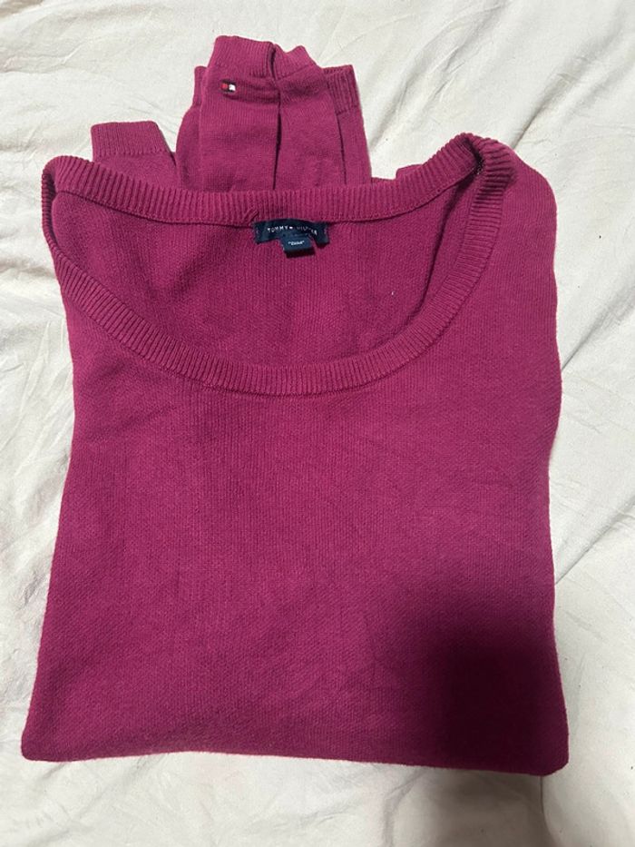 Joli pull col rond bordeaux • Tommy Hilfiger • taille L/40 • coton - photo numéro 1