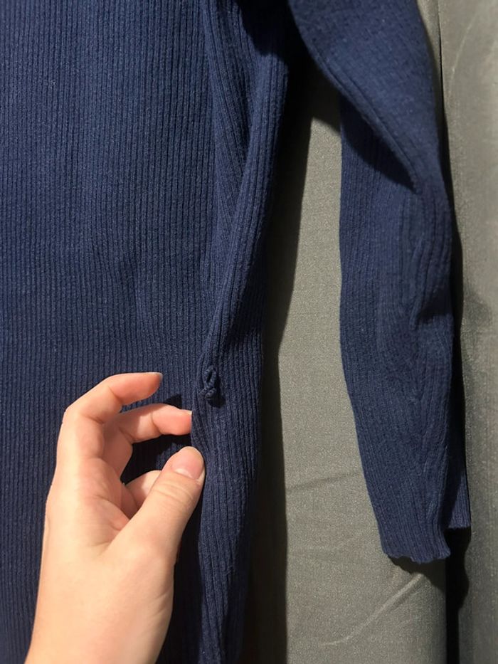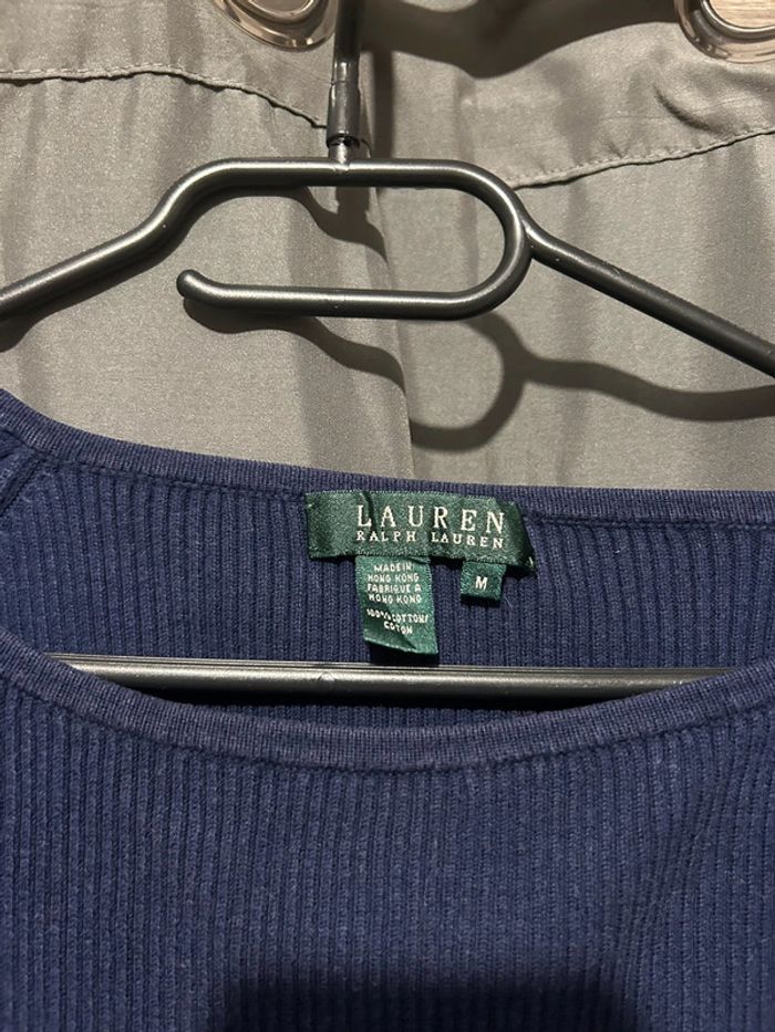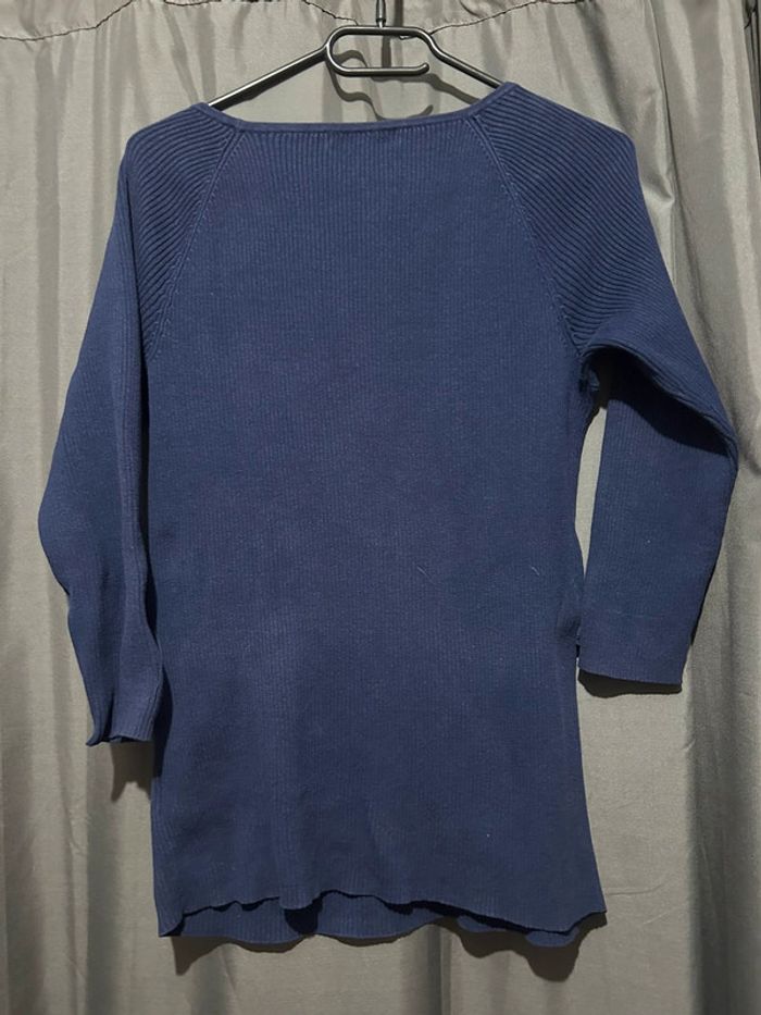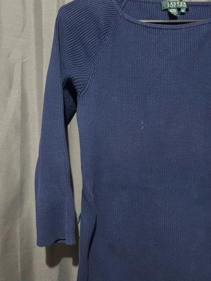 Joli pull manches 3/4 bleu marine • col rond • possibilité d’une ceinture • taille M • Ralph Lauren - photo numéro 9