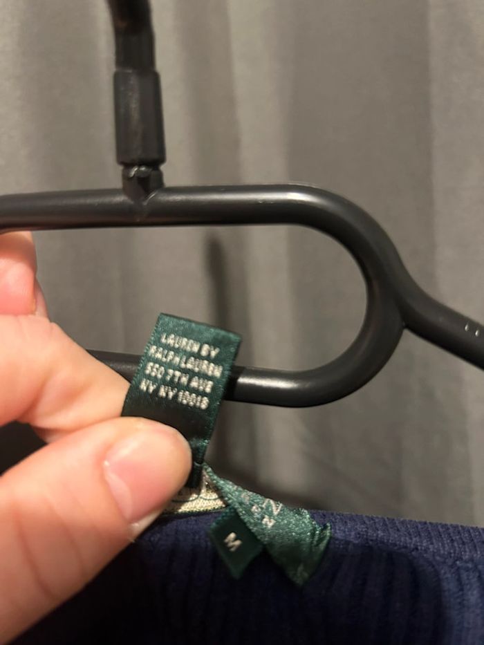 Joli pull manches 3/4 bleu marine • col rond • possibilité d’une ceinture • taille M • Ralph Lauren - photo numéro 10