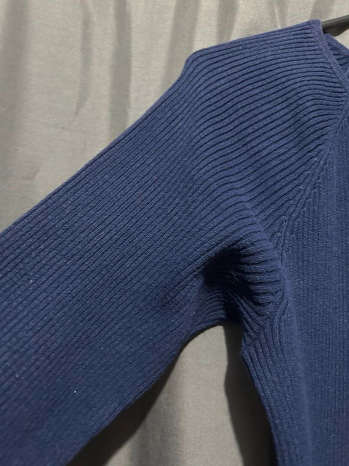 Joli pull manches 3/4 bleu marine • col rond • possibilité d’une ceinture • taille M • Ralph Lauren - photo numéro 5
