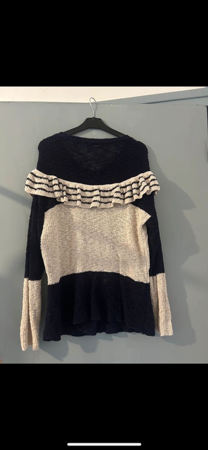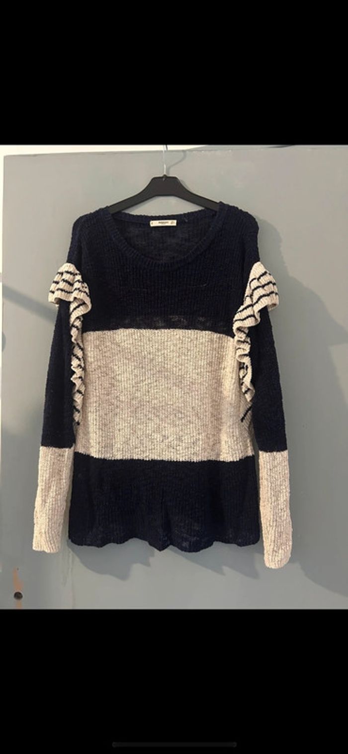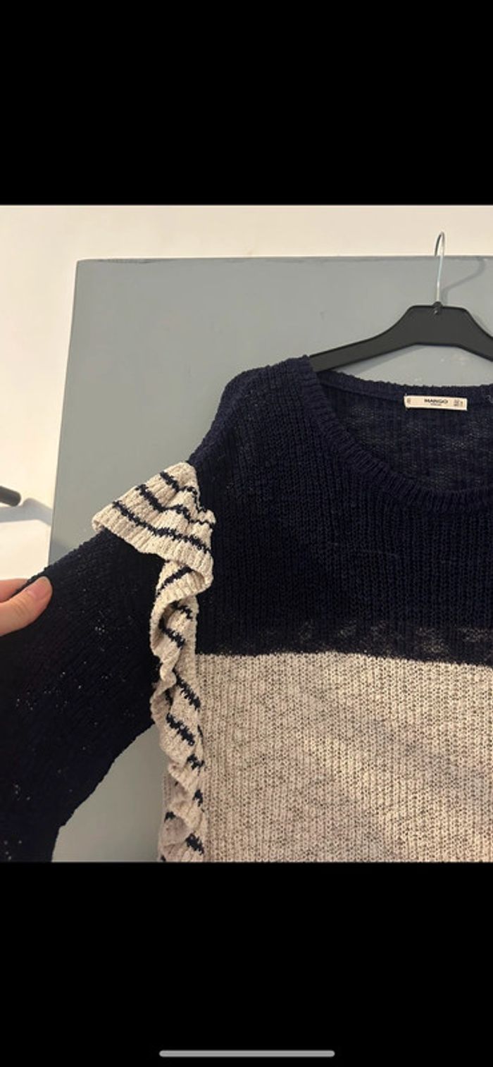 Magnifique pull en coton à rayures et détails bleu et blanc • mango • Taille L/40 • en mailles Volants aux épaules 50% coton - 50% polyamide #pull #pullover #pullmango #pullencoton #pullrayures #pullàvolants#mango #pullcoton #pullmaille