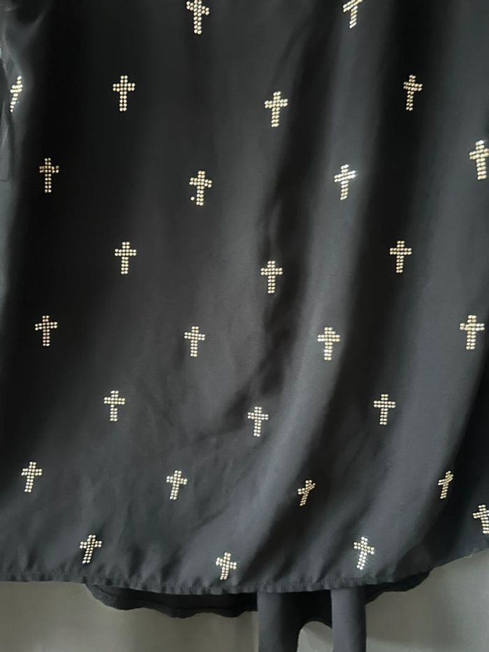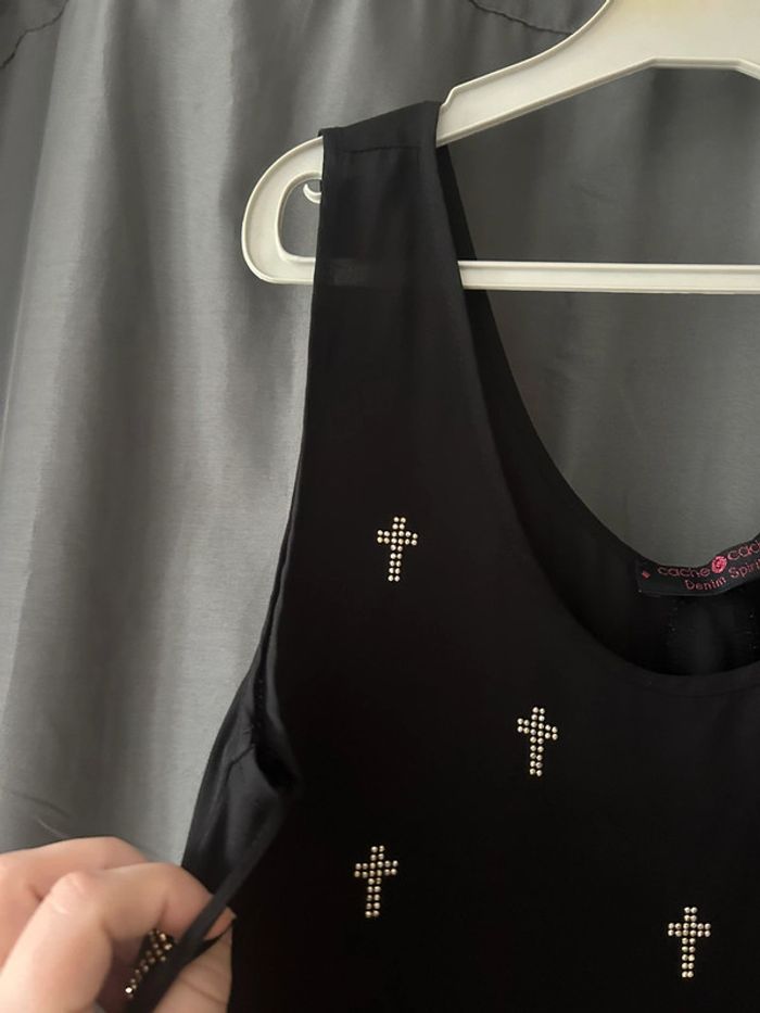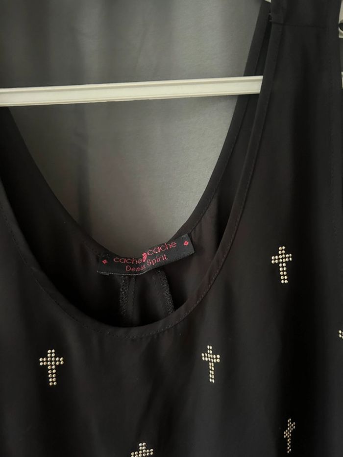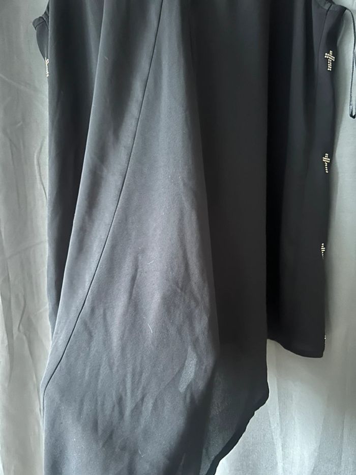 Joli débardeur en voile noir asymétrique motifs croix • cache cache • taille S - photo numéro 2