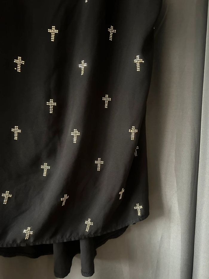 Joli débardeur en voile noir asymétrique motifs croix • cache cache • taille S - photo numéro 5