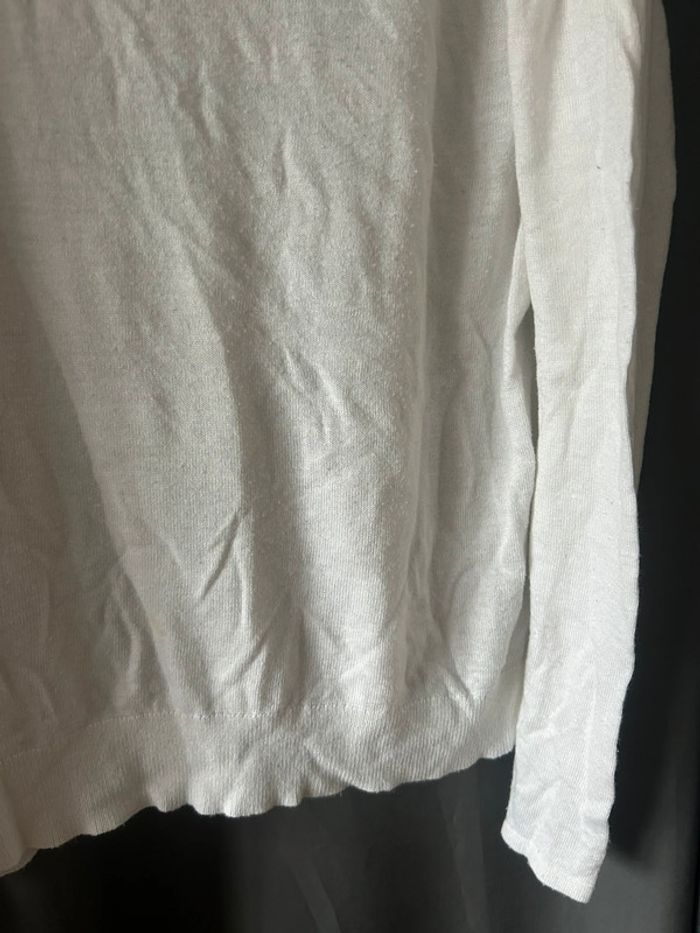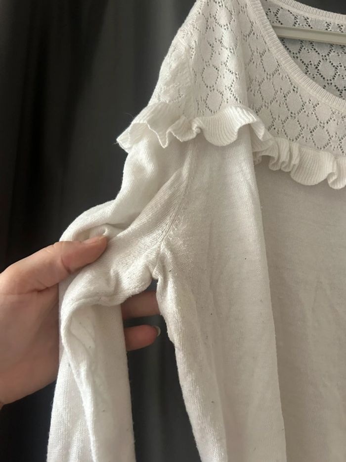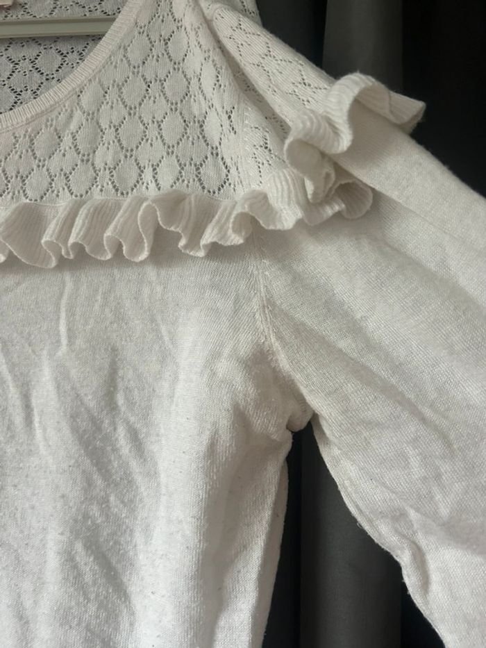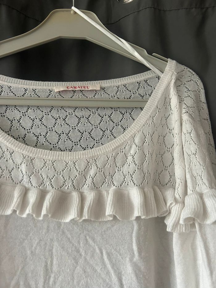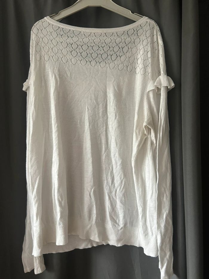 Joli pull léger blanc en dentelle et petits volants • Camaïeu • Taille L - photo numéro 6