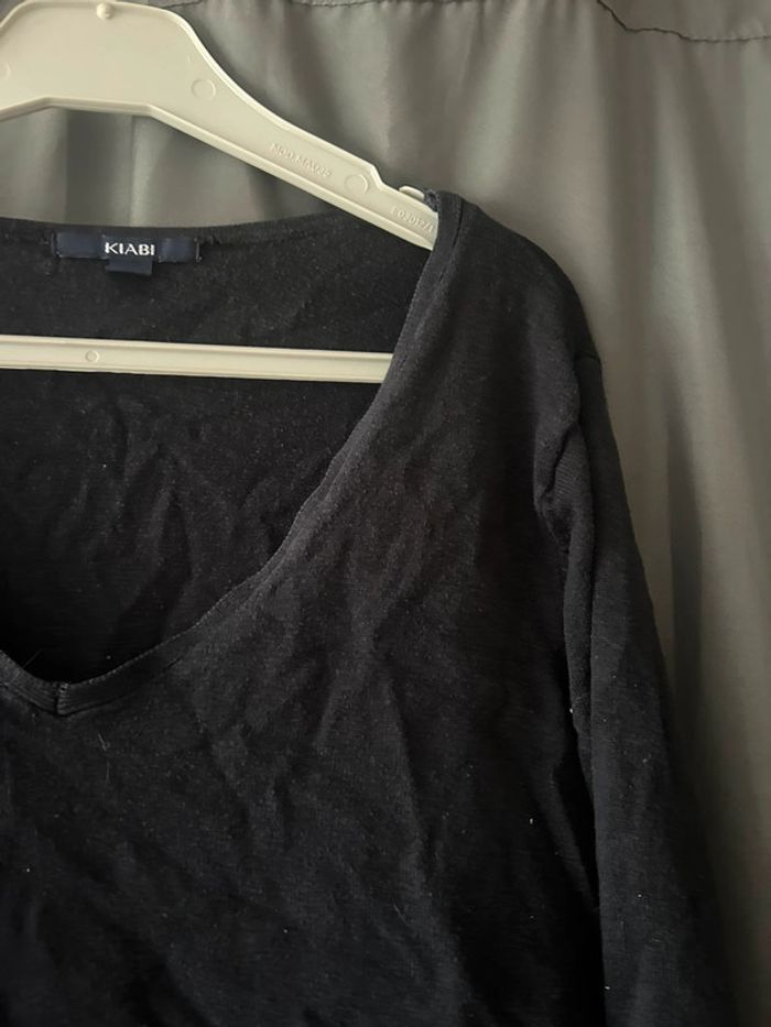 Joli petit pull noir uni à col V • Kiabi • taille M - photo numéro 2