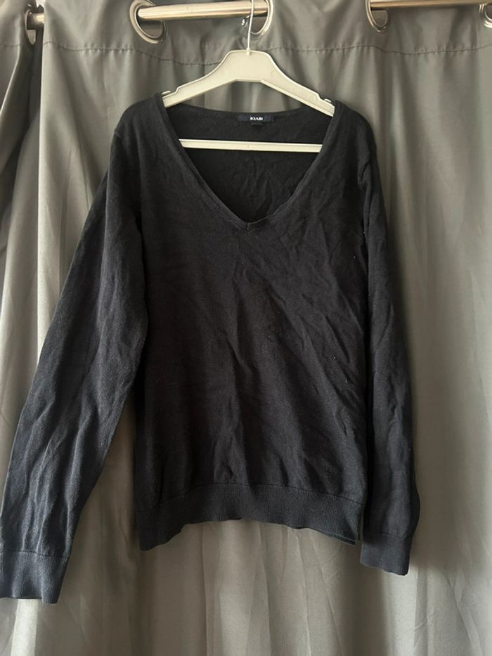 Joli petit pull noir uni à col V • Kiabi • taille M - photo numéro 1