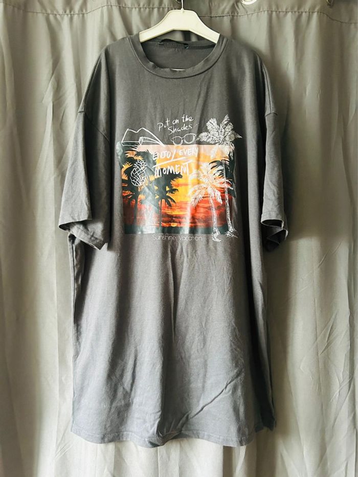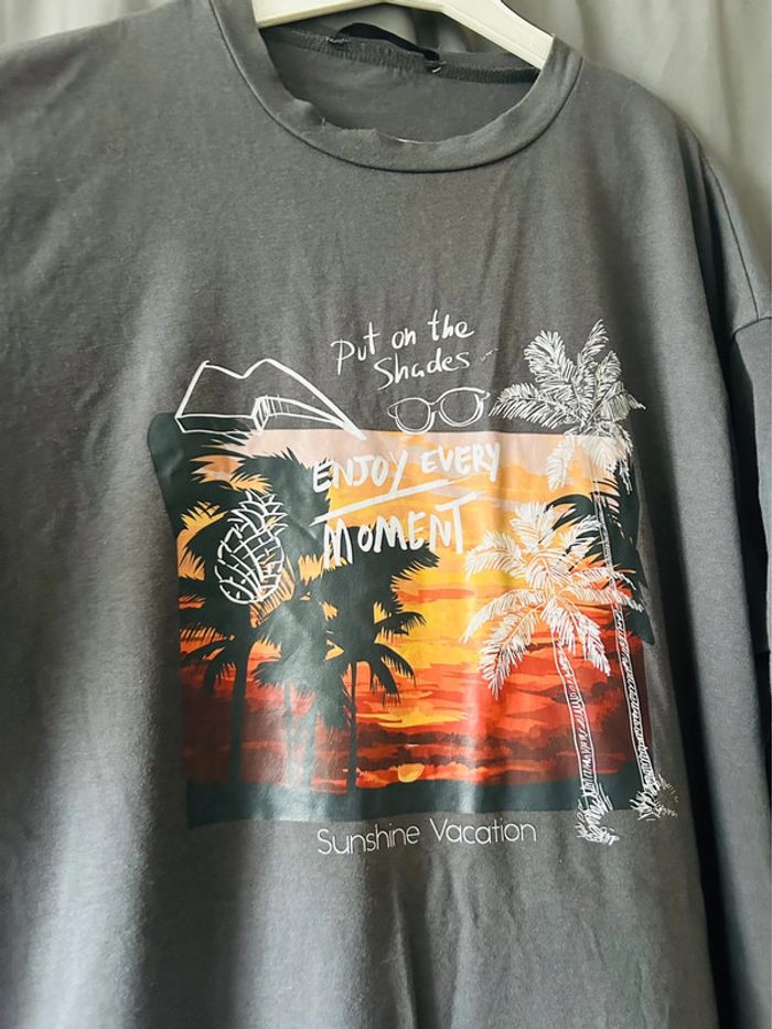 Joli tee-shirt long et large gris à motifs • shein • taille S - photo numéro 1