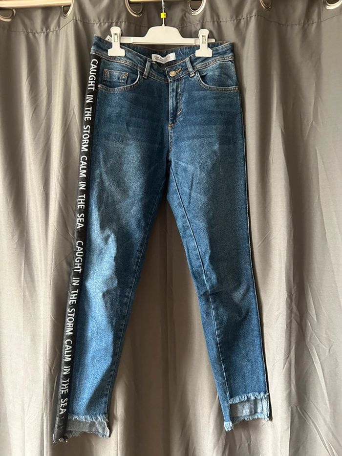 Joli jean bleu brut taille haute avec détails / bandes sur le côtés • Zara • taille M - photo numéro 2