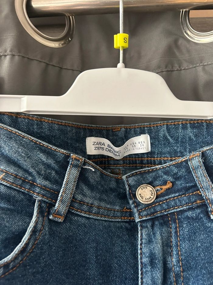 Joli jean bleu brut taille haute avec détails / bandes sur le côtés • Zara • taille M - photo numéro 1