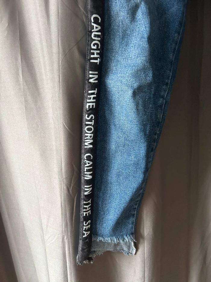 Joli jean bleu brut taille haute avec détails / bandes sur le côtés • Zara • taille M - photo numéro 9