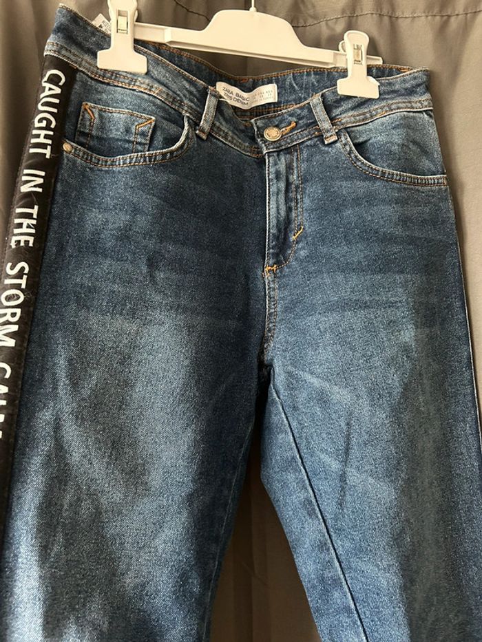Joli jean bleu brut taille haute avec détails / bandes sur le côtés • Zara • taille M - photo numéro 3