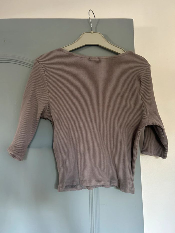 Mignon petit top court à manches courtes violet côtelé • H&M • taille M/38 - photo numéro 2