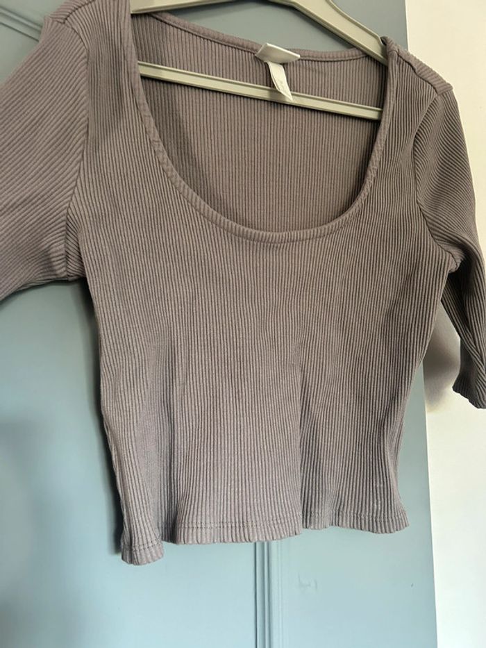 Mignon petit top court à manches courtes violet côtelé • H&M • taille M/38 En très bon état #hm #topcourt #cotelé #topcotele