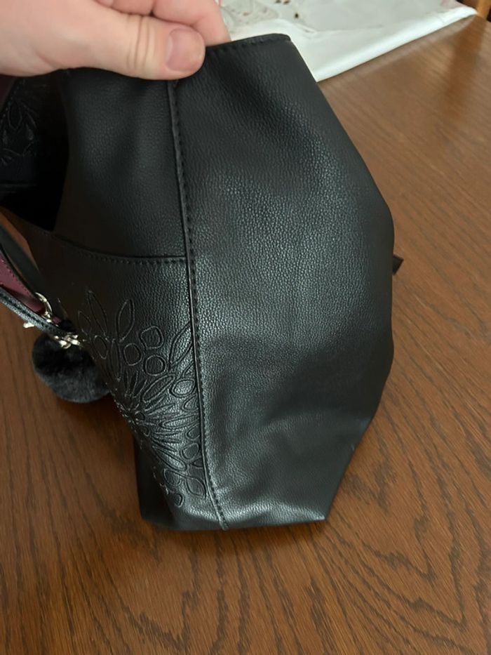 Magnifique sac en cuir noir et violet avec motifs et pochette  • Desigual - photo numéro 2