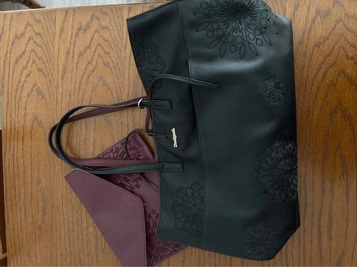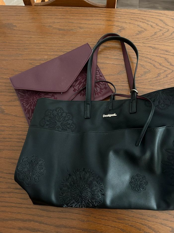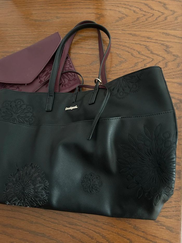 Magnifique sac en cuir noir et violet avec motifs et pochette  • Desigual - photo numéro 1