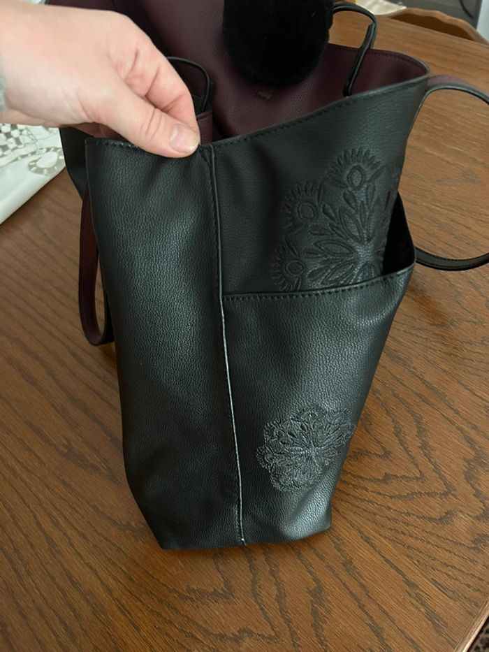 Magnifique sac en cuir noir et violet avec motifs et pochette  • Desigual - photo numéro 10