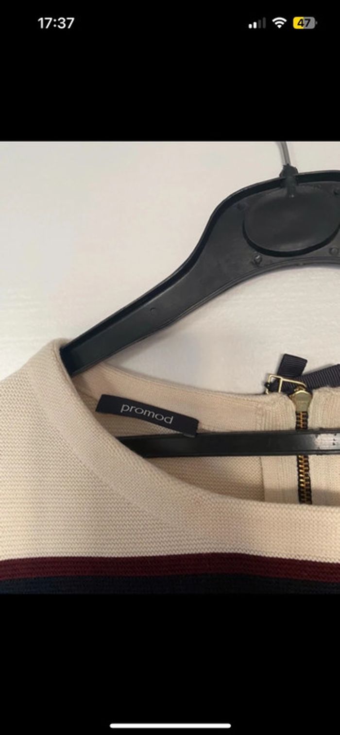 Magnifique petit pull à rayures beige et bordeaux • Promod • Taille S/36 - photo numéro 5