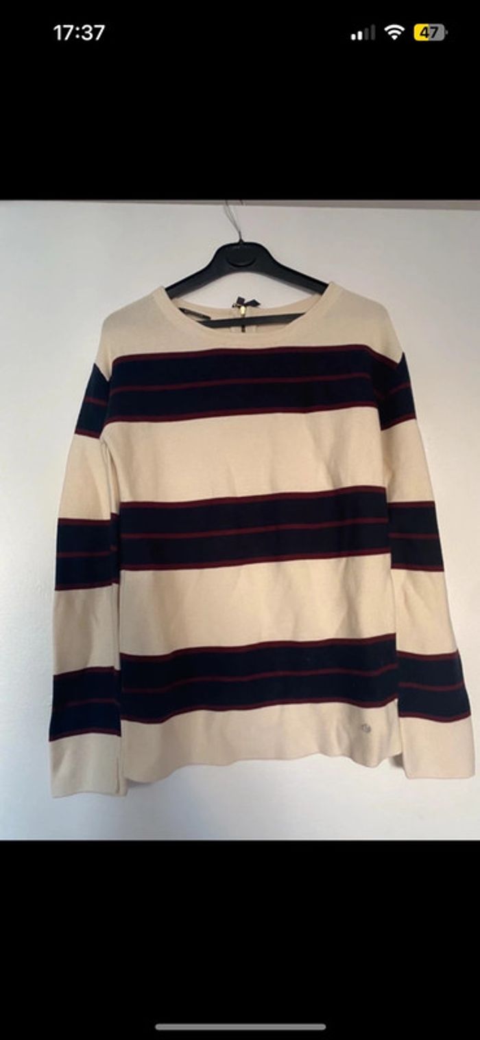 Magnifique petit pull à rayures beige et bordeaux • Promod • Taille S/36 - photo numéro 1