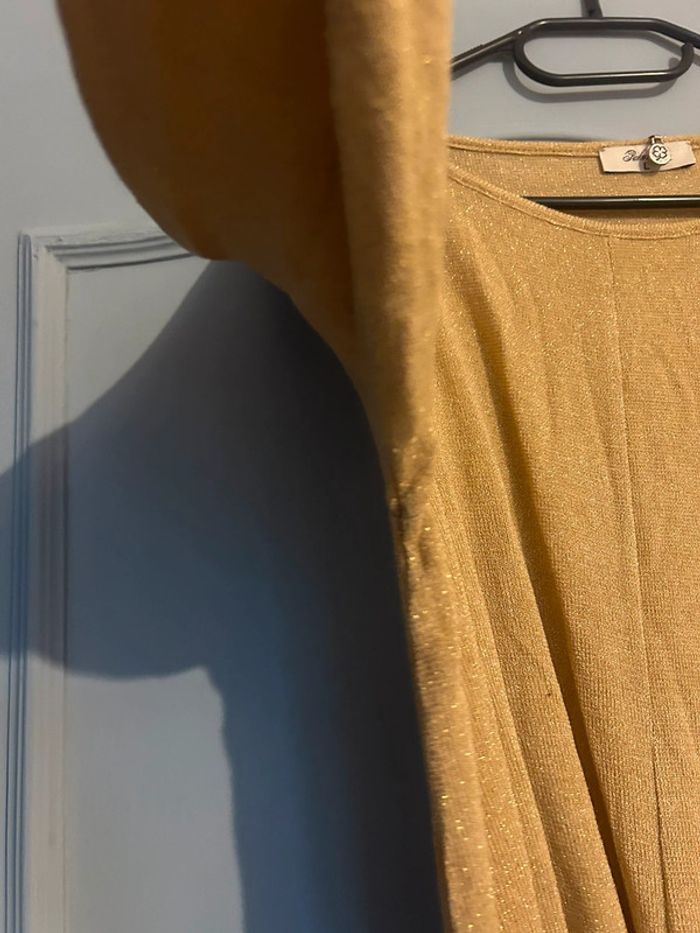 Petit top à paillettes et manches longues doré • Pako Litto/vintage • Taille L/40 - photo numéro 3