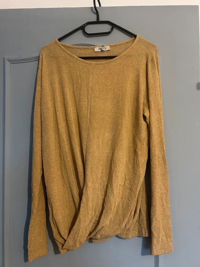 Petit top à paillettes et manches longues doré • Pako Litto/vintage • Taille L/40 - photo numéro 1