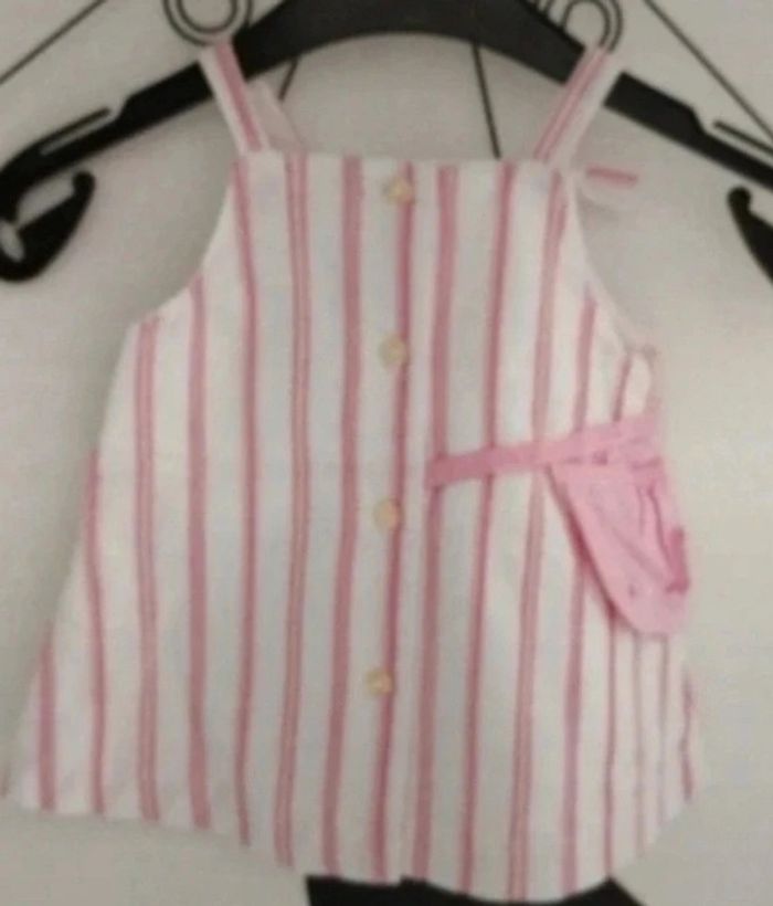 Jolie robe d'été rose at blanche à rayures Tissaia taille 1 mois - photo numéro 4