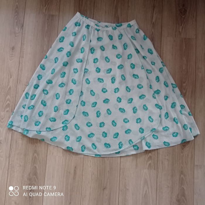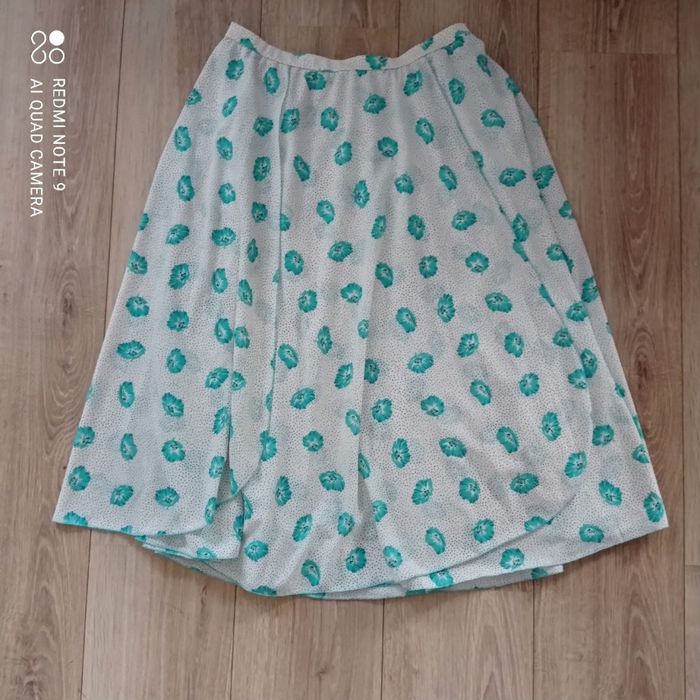 Jupe blanche à fleurs turquoise t42 vintage - photo numéro 1